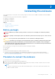 2 Connecting the enclosure The storage enclosure is connected to a host server by using one or both of the two EMMs. The EMMs are named as EMM 0 and EMM 1. You can connect the enclosure in three different configurations: ● Single Port Configuration ● Redundant Configuration ● Multi-chain Configuration Topics: • • • Before you begin Procedure to connect the enclosure Cabling your enclosure Before you begin WARNING: Whenever you lift the system, get others to assist you.