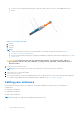 ● To remove the SAS cable, pull the pull-tab to release the cable from the connector on the EMM and the host system. Figure 1. Connecting a SAS cable a. Pull-tab b. SAS cable c. SAS port NOTE: ● To make sure that the controller is correctly installed, see your RAID controller documentation at https:// www.dell.com/storagecontrollermanuals. ● For more information about single port configuration, redundant configuration, multi-chain configuration, see Cabling Your Enclosure.