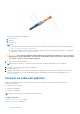 Ilustración 1. Conexión de un cable SAS a. Lengüeta de tiro b. cable SAS c. Puerto de SAS NOTA: ● Para asegurarse de que la controladora esté correctamente instalada, consulte la documentación de la controladora RAID en https://www.dell.com/storagecontrollermanuals. ● Para obtener más información acerca de la configuración de un puerto único, la configuración redundante y la configuración multicadena, consulte Conexión de cables del gabinete.
