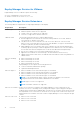 Item Description ● VMware Virtual Machines = VMwareVM ● VMware Datastore = VMwareDS Backup Type Shows the backup type: Copy (the default) or Full. Retention Policy Shows how many restore points to keep. Unchecking Delete Old Restore Points keeps all the restore points. The default is to keep 3 restore points. NOTE: If you decide to keep large number of restore points, check LUN availability. Schedule If scheduled, shows a brief description of the schedule.