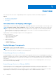 1 Overview This section provides an overview of Replay Manager and its components, and lists the installation requirements. Topics: • • • Introduction to Replay Manager Replay Manager Requirements IPv6 Support Introduction to Replay Manager Replay Manager is a client/server application that creates and manages application-consistent Replays on a Dell Storage Center.