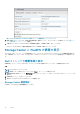• • • • Name(名前) - 選択した仮想マシンの名前 CPU - 仮想マシンに関連付ける CPU Memory(メモリ) - 割り当てるメモリ容量 Network(ネットワーク) - 仮想マシンに使用するネットワーク ボリューム ボリュームページを使用して、新しい Dell ボリュームの属性を指定します。 • • • Volume Name(ボリューム名) – ボリュームの名前を入力します。 Size(サイズ) – ボリュームサイズを指定します。 Volume Folder(ボリュームフォルダ) – ボリュームのフォルダの場所を選択します。 ボリューム保持 Volume Retention(ボリューム保持)ページを使用して、ボリュームまたは Raw デバイスの削除用の保持オプションを指定します。 ウィザードページのリファレンス 95