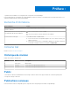 Remarques, précautions et avertissements REMARQUE : Une REMARQUE indique des informations importantes qui peuvent vous aider à mieux utiliser votre produit. PRÉCAUTION : ATTENTION vous avertit d’un risque de dommage matériel ou de perte de données et vous indique comment éviter le problème. AVERTISSEMENT : un AVERTISSEMENT signale un risque d’endommagement du matériel, de blessure corporelle, voire de décès. © 2017 Dell Inc. ou ses filiales. Tous droits réservés.