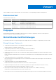 Anmerkungen, Vorsichtshinweise und Warnungen ANMERKUNG: Eine ANMERKUNG macht auf wichtige Informationen aufmerksam, mit denen Sie Ihr Produkt besser einsetzen können. VORSICHT: Ein VORSICHTSHINWEIS warnt vor möglichen Beschädigungen der Hardware oder vor Datenverlust und zeigt, wie diese vermieden werden können. WARNUNG: Mit WARNUNG wird auf eine potenziell gefährliche Situation hingewiesen, die zu Sachschäden, Verletzungen oder zum Tod führen kann. © 2018 Dell Inc. oder ihre Tochtergesellschaften.