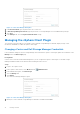 Figure 3. Connection Manager Dialog Box 6. In vCenter Password, type the password of the vCenter user. 7. In Dell Storage Manager Password, type the password of a Storage Manager user with administrator privileges. 8. Click Save. 9. In the Manage tab, clear the Register VASA Provider setting. Managing the vSphere Client Plugin The following sections describe how to manage vCenter and Dell Storage Manager credentials, display Storage Center information, and disable or enable thevSphere Client Plugin.