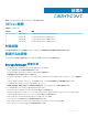 メモ、注意、警告 メモ: 製品を使いやすくするための重要な情報を説明しています。 注意: ハードウェアの損傷やデータの損失の可能性を示し、その問題を回避するための方法を説明しています。 警告: 物的損害、けが、または死亡の原因となる可能性があることを示しています。 © 2017 ~ 2018 Dell Inc. またはその子会社。無断転載を禁じます。Dell、EMC、およびその他の商標は、Dell Inc. またはその子会社の商標です。その他の商標は、そ れぞれの所有者の商標である場合があります。 2018 - 11 Rev.