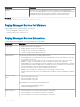 9 Troubleshooting Use the following table to help troubleshoot issues with Replay Manager. Problem Solution Backup set name is different in Storage Center than in Replay Manager Names are truncated to 31 characters in Storage Center. For more information: User-Defined Name in Summary of Backup Set Options Connection failure • • • Check the firewall setting. This scenario is the most likely cause of the connection failure. Open port 27444.