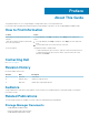 • Contains in-depth feature configuration and usage information. Unisphere and Unisphere Central for SC Series Administrator’s Guide • Contains instructions and information for managing storage devices using Unisphere and Unisphere Central for SC Series. Storage Manager Release Notes • Provides information about Storage Manager releases, including new features and enhancements, open issues, and resolved issues.