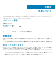 メモ、注意、警告 メモ: 製品を使いやすくするための重要な情報を説明しています。 注意: ハードウェアの損傷やデータの損失の可能性を示し、その問題を回避するための方法を説明しています。 警告: 物的損害、けが、または死亡の原因となる可能性があることを示しています。 © 2018 - 2019 Dell Inc.その関連会社。All rights reserved.Dell、EMC、およびその他の商標は、Dell Inc. またはその子会社の商標で す。その他の商標は、それぞれの所有者の商標である場合があります。 2019 - 08 Rev.
