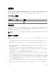 • 『Dell Storage Manager Administrator’s Guide』(Dell Storage Manager 管理者ガイド) Dell Storage Manage 2016 R1 の設定および管理手順が説明されています。ただし、Enterprise Manager 2015 R3 を使用している場合は、 『Enterprise Manager Administrator’s Guide』 (Enterprise Manager 管理 者ガイド)を参照してください。 • 『Dell FluidFS Administrator’s Guide』(Dell FluidFS Administrator ガイド) Dell Fluid File System(FluidFS)と、ネットワーク接続ストレージ(NAS)の管理方法が説明されていま す。 Dell へのお問い合わせ Dell では、オンラインおよび電話ベースのサポートとサービスオプションをいくつかご用意しています。サ ポートとサービスは国および製品によって異なり、お住まいの地域では一部のサービスがご利用いただけな い場合があります