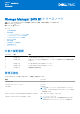 メモ、注意、警告 メモ: 製品を使いやすくするための重要な情報を説明しています。 注意: ハードウェアの損傷やデータの損失の可能性を示し、その危険を回避するための方法を説明しています。 警告: 物的損害、けが、または死亡の原因となる可能性があることを示しています。 © 2019 - 2021 Dell Inc. その関連会社。All rights reserved.Dell、EMC、およびその他の商標は、Dell Inc.