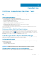 1 Erste Schritte Einführung in das vSphere Web Client Plugin Das Dell Storage vSphere Web Client Plugin ermöglicht die Verwaltung von Dell Storage. ANMERKUNG: Verwenden Sie den VMware vSphere Web Client zur Ausführung aller in diesem Handbuch beschriebenen Konfigurationsverfahren, sofern nicht anders angegeben.