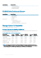 Licenses/Bundles Licensed Features • • • • • • • • • Data Instant Replay (Snapshots) • Manual Replay (Snapshots) Multi-VLAN Tagging Remote Instant Replay (Replication), including Cross-Platform Replication Replay Manager SED FIPS Secure Data Storage Manager Chargeback Virtual Ports Volume QoS VVols SC7020 and SC5020 Features and Licenses The following licensed features and optional value-added bundles are supported on SC7020 and SC5020 storage systems: Licenses/Bundles Licensed Features Core Software