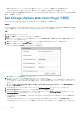 ボリュームの選択 Select Volume(ボリュームの選択)ページを使用して、ストレージとしてマッピングする既存の Dell ボリュームを検索し、選択しま す。選択したボリュームは、VMFS データストアとして事前にフォーマットされている必要があります。 スナップショットオプション Snapshot Options(スナップショットオプション) ページを使用して、一時的な VMware スナップショットを取得し、そのスナッ プショットのオプションを指定します。 ウィザードページのリファレンス 89