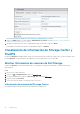 Etiqueta Descripción WWN World Wide Name (WWN) para Fibre Channel y el Nombre cualificado de iSCSI (IQN) para iSCSI Dispositivo Nombre del adaptador Tipo Tipo de adaptador de almacenamiento (FC o iSCSI) Nombre de nodo Nombre de nodo de Fibre Channel Alias Nombre de alias de iSCSI Estado Estado del adaptador Detalles de almacenamiento Tabla 3.