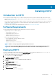 1 Installing DSITV Introduction to DSITV DSITV integrates the Replay Manager Service for VMware (RMSV) and Dell Storage vSphere Web Client Plugin with VMware vSphere. • • • Replay Manager Service for VMware (RMSV) ensures consistent snapshots of VMware virtual machines and datastores. To configure RMSV, see Configuring RMSV. Dell Storage vSphere Web Client Plugin is a plugin for VMware vCenter that provides storage administrators the ability to manage Dell storage with the VMware vSphere Client.