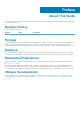 Notes, Cautions, and Warnings NOTE: A NOTE indicates important information that helps you make better use of your product. CAUTION: A CAUTION indicates either potential damage to hardware or loss of data and tells you how to avoid the problem. WARNING: A WARNING indicates a potential for property damage, personal injury, or death. © 2018 - 2019 Dell Inc. or its subsidiaries. All rights reserved. Dell, EMC, and other trademarks are trademarks of Dell Inc. or its subsidiaries.