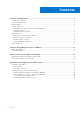 Notes, cautions, and warnings NOTE: A NOTE indicates important information that helps you make better use of your product. CAUTION: A CAUTION indicates either potential damage to hardware or loss of data and tells you how to avoid the problem. WARNING: A WARNING indicates a potential for property damage, personal injury, or death. © 2020 – 2021 Dell Inc. or its subsidiaries. All rights reserved. Dell, EMC, and other trademarks are trademarks of Dell Inc. or its subsidiaries.