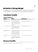 About This Guide This guide describes how to install and configure Storage Manager components. For information about using Storage Manager to manage and monitor your Dell storage infrastructure, see the Dell Storage Manager Administrator’s Guide. How to Find Information To Find Action A description of a field or option in the user interface In Storage Manager, click Help. Tasks that can be performed from a particular 1. area of the user interface 2. In Storage Manager, click Help.