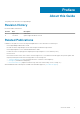Notes, Cautions, and Warnings NOTE: A NOTE indicates important information that helps you make better use of your product. CAUTION: A CAUTION indicates either potential damage to hardware or loss of data and tells you how to avoid the problem. WARNING: A WARNING indicates a potential for property damage, personal injury, or death. © 2019 - 2020 Dell Inc. or its subsidiaries. All rights reserved. Dell, EMC, and other trademarks are trademarks of Dell Inc. or its subsidiaries.