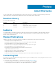 Notes, cautions, and warnings NOTE: A NOTE indicates important information that helps you make better use of your product. CAUTION: A CAUTION indicates either potential damage to hardware or loss of data and tells you how to avoid the problem. WARNING: A WARNING indicates a potential for property damage, personal injury, or death. © 2020 Dell Inc. or its subsidiaries. All rights reserved. Dell, EMC, and other trademarks are trademarks of Dell Inc. or its subsidiaries.