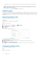 2. 3. 4. 5. 6. 7. 8. 9. In the vSphere Client window, select Menu and click In the Administration pane, click Dell Storage. Click the Manage tab. Click Update. The Connection Manager dialog box opens. Administration. Figure 3. Connection Manager Dialog Box In vCenter Password, type the password of the vCenter user. In Dell Storage Manager Password, type the password of a Storage Manager user with administrator privileges. Click Save. In the Manage tab, clear the Register VASA Provider setting.