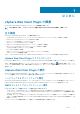 • • Never Expire(失効しない) – このチェックボックスにチェックを付けると、スナップショットが自動では失効しなくなりま す。このスナップショットは手動で失効させる必要があります。 説明(Description) :スナップショットの説明を入力します。 スナップショット選択 Select Snapshots(スナップショットの選択)ページを使用して、データの復元に使用するスナップショットを選択したり、削除す るスナップショットを選択したりします。 • • データの復元に使用する 1 つ、または複数のスナップショットを選択します。データを復元するには、復元するボリュームごと にスナップショットを 1 つ選択します。複数の RDM が仮想マシンにマッピングされている場合、復元するボリュームごとに 1 つのスナップショットを選択する必要があります。 削除する(失効させる)1 つ、または複数のスナップショットを選択します。 Storage Center Storage Center ページを使用して、ストレージを追加する Storage Center を選択します。 92 ウィザードペ
