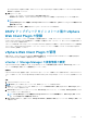 • • • • Name(名前) - 選択した仮想マシンの名前 CPU - 仮想マシンに関連付ける CPU Memory(メモリ) - 割り当てるメモリ容量 Network(ネットワーク) - 仮想マシンに使用するネットワーク ボリューム ボリュームページを使用して、新しい Dell ボリュームの属性を指定します。 • • • Volume Name(ボリューム名) – ボリュームの名前を入力します。 Size(サイズ) – ボリュームサイズを指定します。 Volume Folder(ボリュームフォルダ) – ボリュームのフォルダの場所を選択します。 ボリューム保持 Volume Retention(ボリューム保持)ページを使用して、ボリュームまたは Raw デバイスの削除用の保持オプションを指定します。 ウィザードページのリファレンス 95