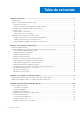 Notas, precauciones y advertencias NOTA: Una NOTA indica información importante que le ayuda a hacer un mejor uso de su producto. PRECAUCIÓN: Una ADVERTENCIA indica un potencial daño al hardware o pérdida de datos y le informa cómo evitar el problema. AVISO: Una señal de PRECAUCIÓN indica la posibilidad de sufrir daño a la propiedad, heridas personales o la muerte. © 2020 – 2021 Dell Inc. o sus filiales. Todos los derechos reservados. Dell, EMC y otras marcas comerciales son marcas comerciales de Dell Inc.