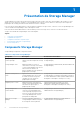 Table des matières Chapitre 1: Présentation de Storage Manager....................................................................................8 Composants Storage Manager............................................................................................................................................ 8 Compatibilité de la gestion....................................................................................................................................................