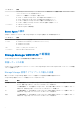 表 35. Storage Manager 2019 R1 での VMware の既知の問題 (続き) 問題 説明 DSM-16656 Dell Storage Manager で vCenter サーバーを初めて登録するとき、[Storage Center の仮想マシン を自動管理]オプションを選択すると、検出されたすべての ESXi ホストとその VM がストレージ パネルの[サーバー]ツリーでレンダリングされます。これらの VM のいずれかが後で vCenter から削除されても、Dell Storage Manager ビューに表示され続けます。 対策:削除された VM を Dell Storage Manager から取り除くには、VM を右クリックして削除し ます。 DSM-16248 まれに、Dell Storage Manager の[サーバー]ビューで[情報のアップデート]を選択すると、 「java.net.