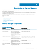 1 Introduction to Storage Manager Storage Manager allows you to monitor, manage, and analyze Storage Center SANs, FluidFS clusters, and PS Series groups from a centralized management console. The Storage Manager Data Collector stores data and alerts it gathers from managed storage devices in an external database or an embedded database.