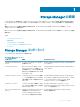 コンポーネント 説明 セットアップマニュアル に、災害復旧サイトをアクティブ化するために 使用できます。 Storage Manager Server Agent Storage Manager が、期限の切れたスナップ 『Storage Manager Administrator’s Guide』(Storage ショットのボリュームストレージ容量を解放でき Manager 管理者ガイド) るようにする Windows のサービス。解放しな いと、Windows によってロックされたままになり ます。 管理互換性 Storage Manager は、ストレージ製品を管理し、Microsoft 製品および VMware 製品の統合管理を提供します。 Storage Manager には、次の表に示されている製品との互換性があります。 製品 バージョン Storage Center 6.7~7.3 メモ: Storage Manager 2018 R1.10 を使用すると、Storage Center 6.