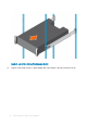 Angka 4. Kencangkan Sekrup-sekrupnya Jika sistem Storage Center termasuk enclosure penyimpanan tambahan, pasang enclosure penyimpanan tambahan ke rak. Baca instruksi yang disertakan bersama enclosure penyimpanan tambahan untuk melihat langkah-langkahnya secara detail. Memasang Bezel Depan Pasang bezel di bagian depan sistem penyimpanan. langkah 1 Kaitkan bagian ujung kanan bezel ke sistem penyimpanan.