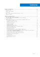 Notes, cautions, and warnings NOTE: A NOTE indicates important information that helps you make better use of your product. CAUTION: A CAUTION indicates either potential damage to hardware or loss of data and tells you how to avoid the problem. WARNING: A WARNING indicates a potential for property damage, personal injury, or death. © 2018 —2021 Dell Inc. or its subsidiaries. All rights reserved. Dell, EMC, and other trademarks are trademarks of Dell Inc. or its subsidiaries.