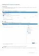 Adding the HCI cluster connection About this task For monitoring and management purposes, add the hyperconverged cluster that is based on Dell EMC Solutions for Azure Stack HCI as a connection in Windows Admin Center. Steps 1. Go to Windows Admin Center > Cluster Manager, as shown in the following figure. Figure 3. HCI cluster navigation 2. Click Add. The Add Cluster window is displayed. 3. Enter the cluster FQDN and select Also add servers in the cluster, as shown in the following figure. Figure 4.