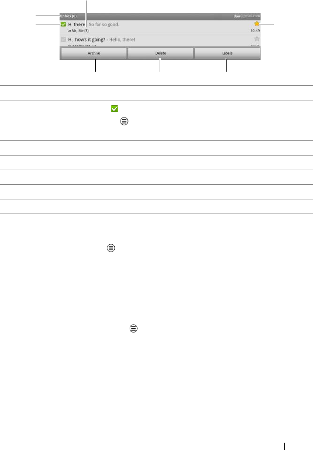 2 Touch the check box to select the e-mail thread. To use this feature,