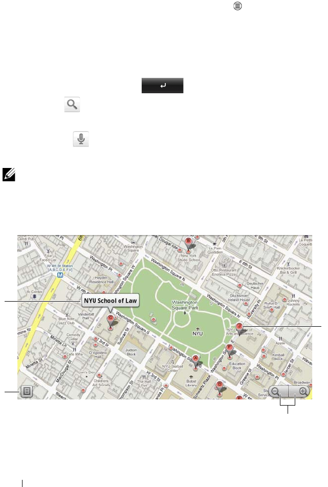 1 On the Maps screen, touch the Menu button Search.