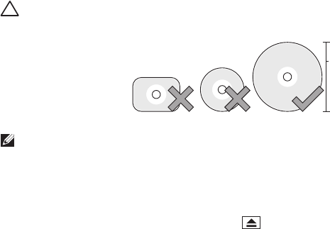 CAUTION: Do not use non-standard-size or shape discs (including mini-CDs and mini-DVDs) or