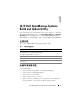 关于 Dell OpenManage Systems Build and Update Utility Dell OpenManage Systems Build and Update Utility (SBUU) 是一款用于部 署和更新 Dell 系统的集成工具。它具有服务器操作系统安装、固件更新和 硬件配置等模块。利用这些模块,用户可以在预操作系统环境中更新 BIOS 和固件,在当前系统或多个系统上应用这些设置以及安装操作系统。 主要功能 表 1-1 列出了部署和更新 Dell 系统的主要 SBUU 功能。 表 1-1. 本指南的信息组织 操作项 参阅 在预操作系统环境中更新系统固件 (底板管理 更新系统固件 控制器 [BMC]、Dell 远程访问控制器 [DRAC]、 独立磁盘冗余阵列 [RAID])和 BIOS。 配置系统硬件。 配置系统硬件 在系统上安装操作系统。 安装操作系统 创建自定义可引导介质以部署所选的多个系统 在不同情形下使用 SBUU (不同平台)。 此版本有何新功能 支持以下操作系统: • VMware ESX 4.1 U2 和 ESXi 4.