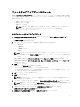ファームウェアアップデートモジュール SBUU のファームウェアアップデートモジュールでは、プレオペレーティングシステム環境でお使いの Dell シ ステムの BIOS とファームウェアバージョンをアップデートすることが可能です。このモジュールでは、次の 操作を実行できます。 • お使いのシステムのインベントリ • 独自のリポジトリの選択 • 比較レポートの生成 • メモ: 比較レポートは、既存のシステム上の各コンポーネントの現在インストールされているバ ージョンと、同じシステムのリポジトリコンポーネントバージョンとの比較です。 システムコンポーネントのアップグレード システムファームウェアのアップデート 1. Dell Systems Build and Update Utility ホーム 画面で、左ペインにある ファームウェアアップデート をクリ ックします。 リポジトリ選択 画面が表示されます。 2.