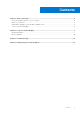 Notes, cautions, and warnings NOTE: A NOTE indicates important information that helps you make better use of your product. CAUTION: A CAUTION indicates either potential damage to hardware or loss of data and tells you how to avoid the problem. WARNING: A WARNING indicates a potential for property damage, personal injury, or death. © 2022 Dell Inc. or its subsidiaries. All rights reserved. Dell, EMC, and other trademarks are trademarks of Dell Inc. or its subsidiaries.