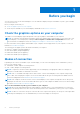 1 Before you begin You can connect up to four 4K external displays or two 5K and above displays using the Thunderbolt 4 (USB-C) ports available on your Precision 5770. Before you begin, ensure that you: ● Check the graphics options on your computer ● Check the ports available on your external displays and decide on the mode of connection Check the graphics options on your computer The number of external displays supported depends on the type of graphics card available on your computer.