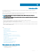 Notas, precauciónes y advertencias NOTA: Una NOTA señala información importante que lo ayuda a hacer un mejor uso de su producto. PRECAUCIÓN: Una PRECAUCIÓN indica un potencial daño al hardware o pérdida de datos y le informa cómo evitar el problema. ADVERTENCIA: Una señal de ADVERTENCIA indica la posibilidad de sufrir daño a la propiedad, heridas personales o la muerte. © 2018 Dell Inc. o sus filiales. Todos los derechos reservados. Dell, EMC, y otras marcas comerciales son marcas comerciales de Dell Inc.