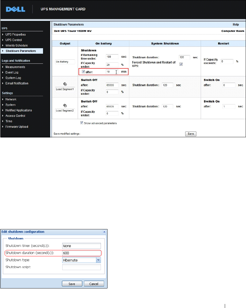 Abbildung 90. Parameter der Dell Netzwerkmanagementkarte zum Herunterfahren