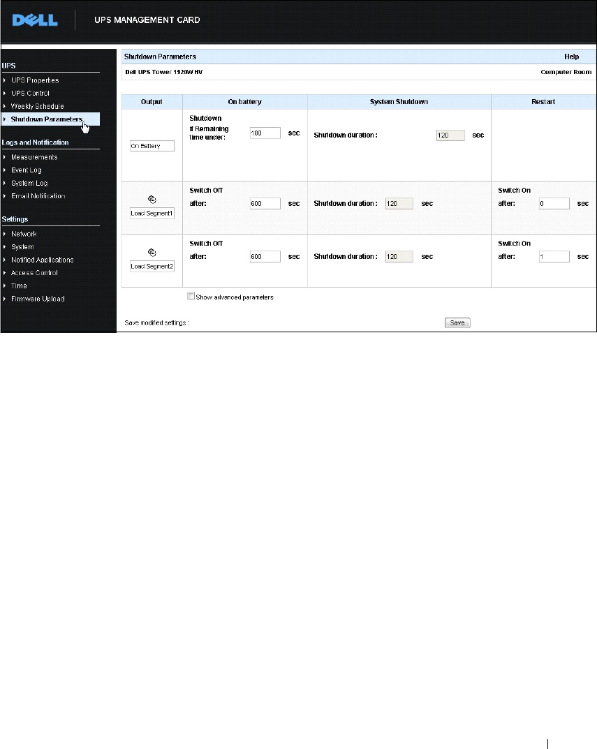 Figura 88. Interfaz web de Tarjeta de gestión de red Dell