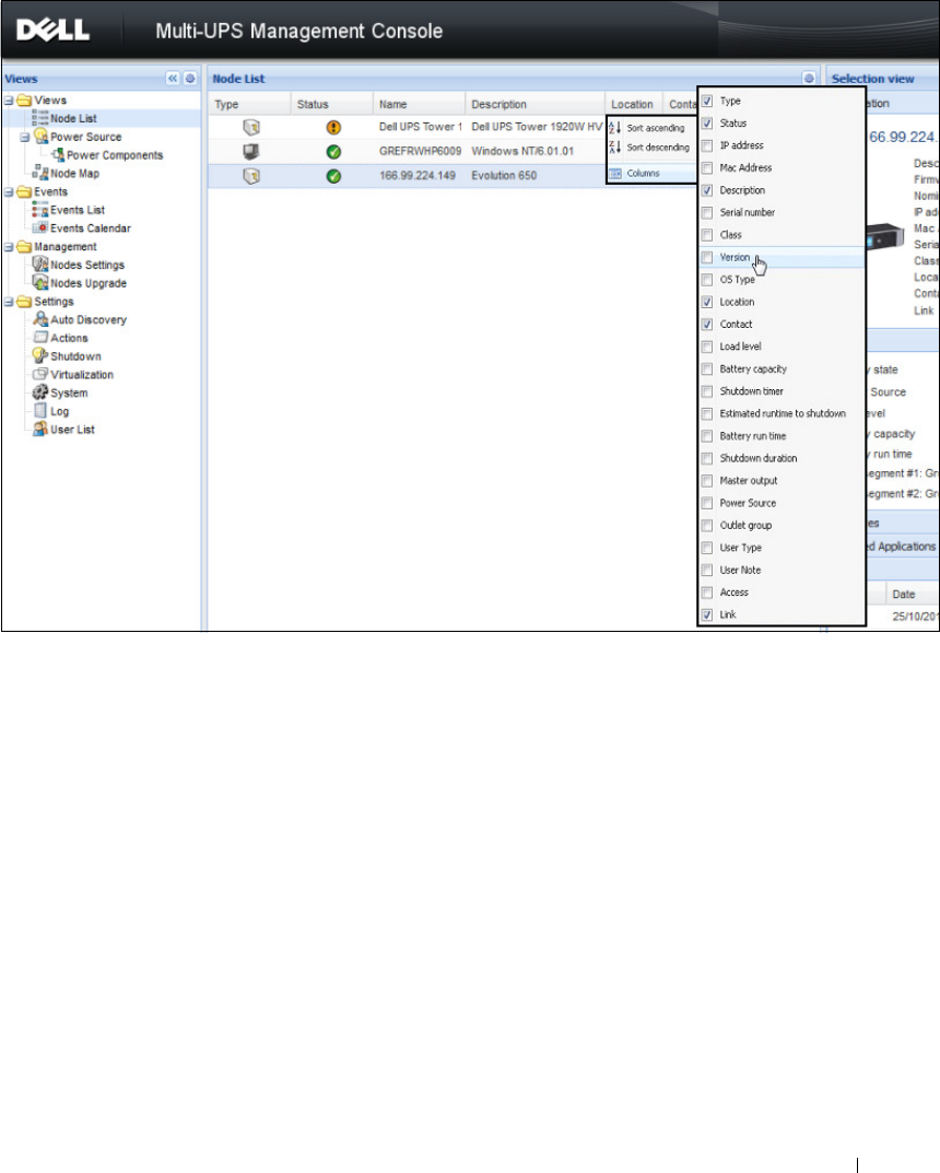 Figura 17. Añadir columnas a la vista Lista de nodos