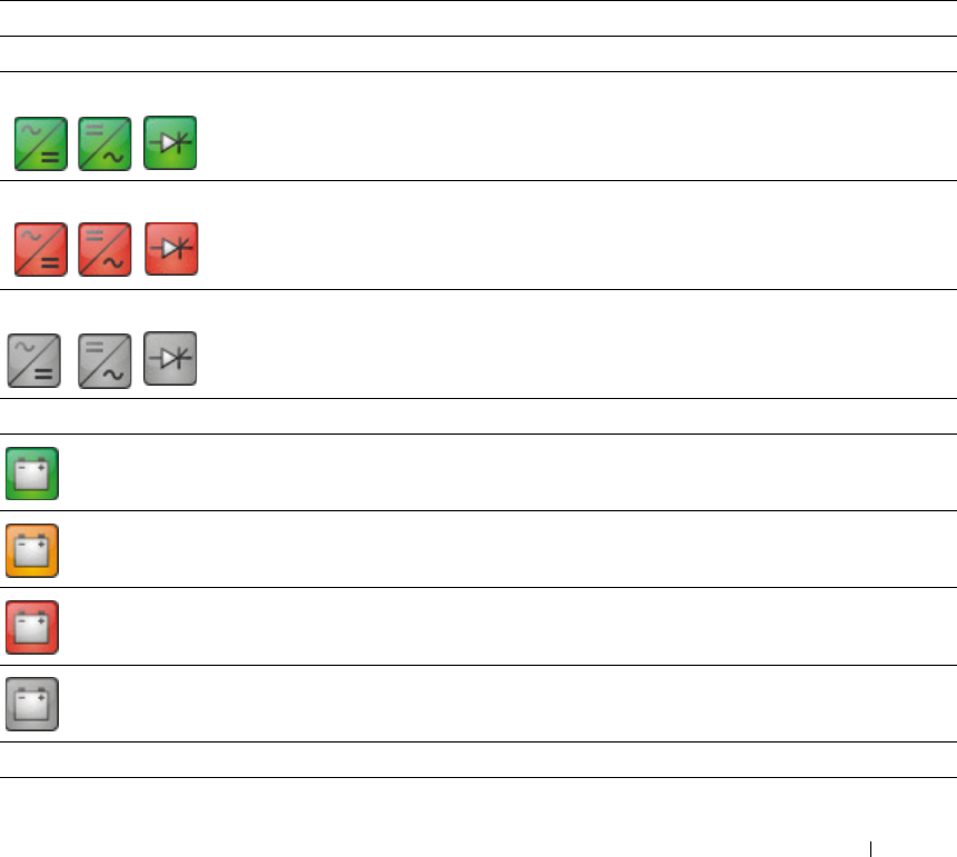 En el sinóptico, se muestran iconos codificados mediante color para los elementos siguientes (consulte la
