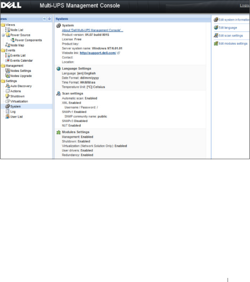 報、 言語、 ス キ ャ ン設定、 モジ ュール設定を編集でき ます (図 13 を参照)。