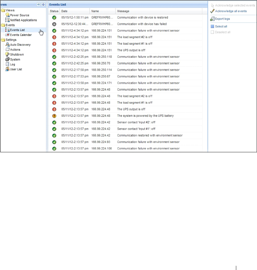 を選択する と 、 イベン ト リ ス ト ページが表示 されます (図 41 を参